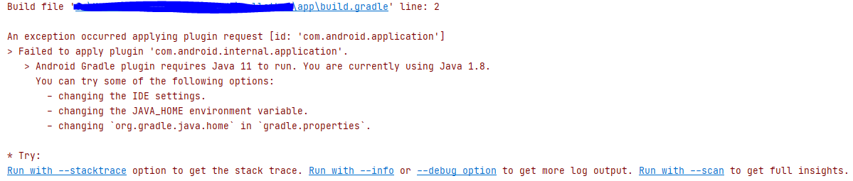Android Gradle plugin requires Java 11 to run. You are currently using Java 1.8.